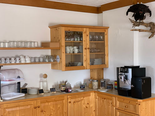 Die wichtigste Mahlzeit des Tages ist das Frühstück. Jeden Morgen gibt es im wunderbaren Frühstücksraum ein reichhaltiges Buffet mit allem, was man für einen guten Start in den Tag und gestärkt für die vielen Ferienabenteuer braucht.